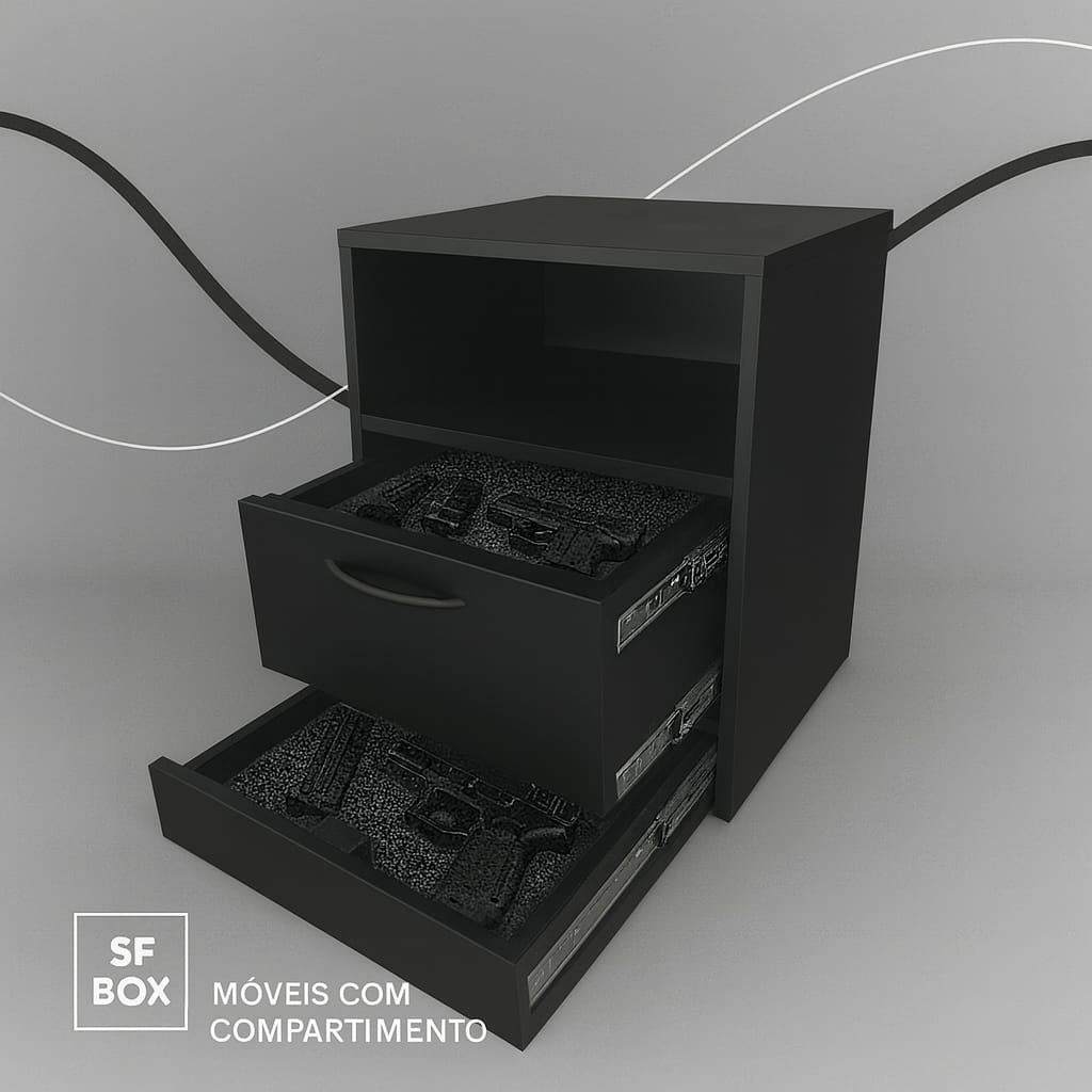 Mesa De Cabeceira uma Gaveta com dois Compartimentos Secreto - Preto